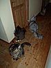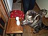 I spoke too soon. Whiskey was getting to work while we were driving home from work. Creating havoc is his full-time job. Our alarm company called cellphone to inform us our burglar alarm went off. Held our breath getting home. Opened door expecting to find Christmas tree toppled over. Tree survived. Presents under tree were scattered all over the floor. Kitty must have been having a grand time looking for more gifts for himself. Police arrived looking at doors & windows for break-in. Luckily we were there to inform them that kitty must have triggered the alarm. Had a good laugh after, but how embarrassing to have the police arrive because of our insane cat.